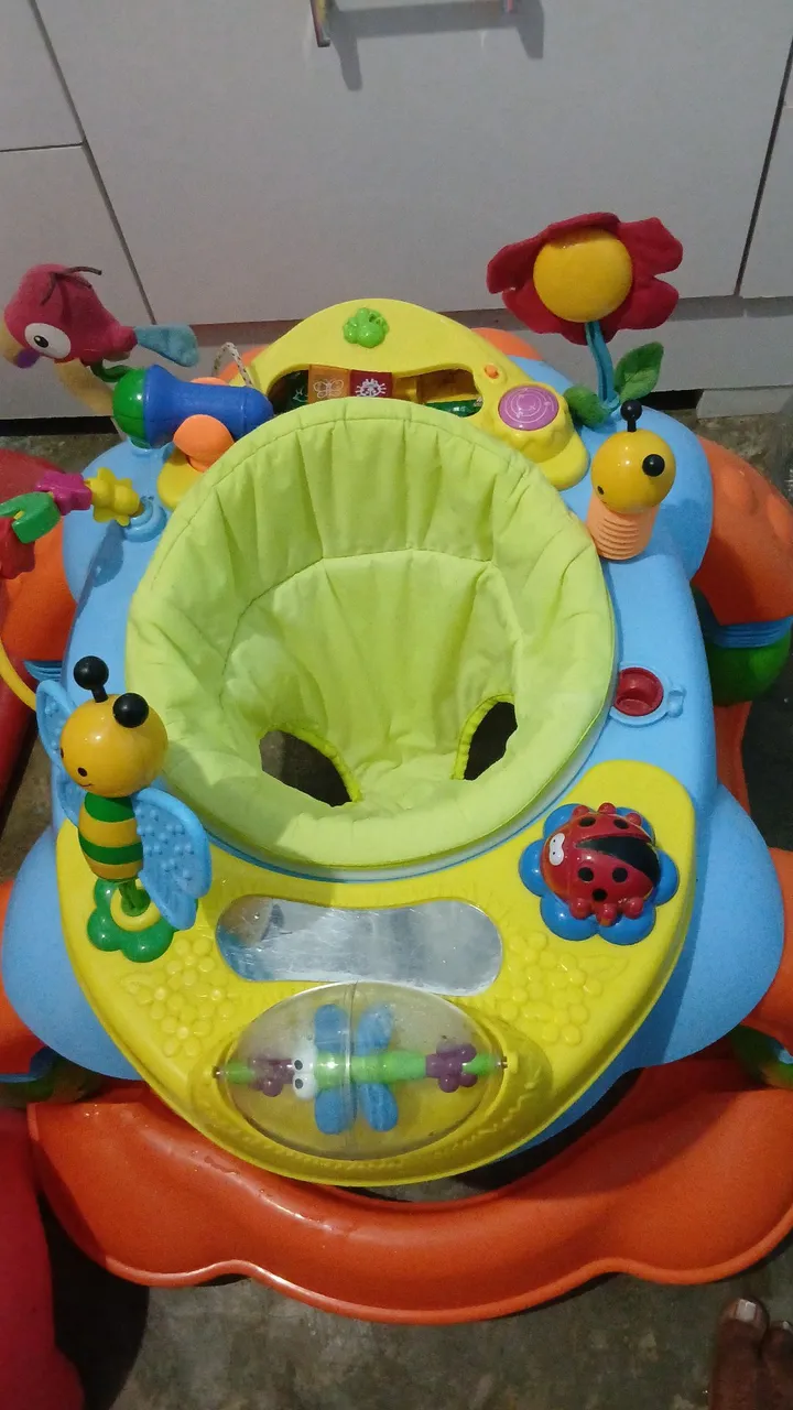 Andador com atividades e brinquedos para o seu bebê. Ajuda no desenvolvimento e na diversão do seu pequeno.