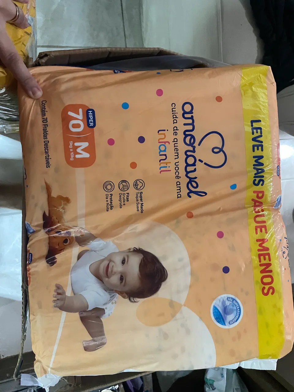 As fraldas Amorável Infantil oferecem cuidado e proteção para o seu bebê! Com toque suave e super absorção, garantem conforto durante todo o dia e noite. O pacote Hiper M com 70 fraldas é ideal para bebês de 5 a 10kg.