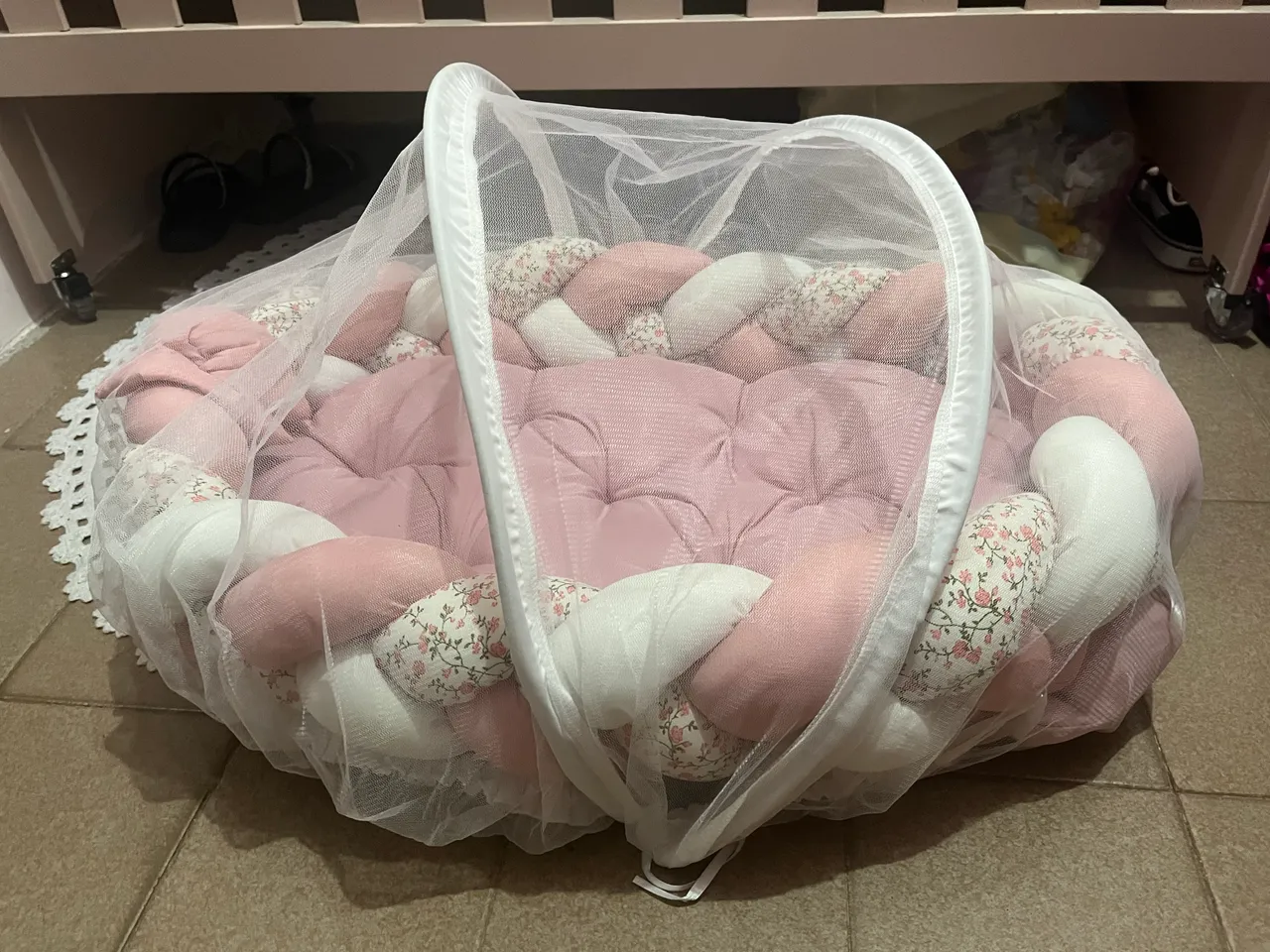 Ninho para bebê menina, perfeito para proporcionar conforto e segurança ao seu pequeno. Com design charmoso e tecido macio, este ninho é ideal para aconchegar o bebê durante o sono e momentos de descanso.