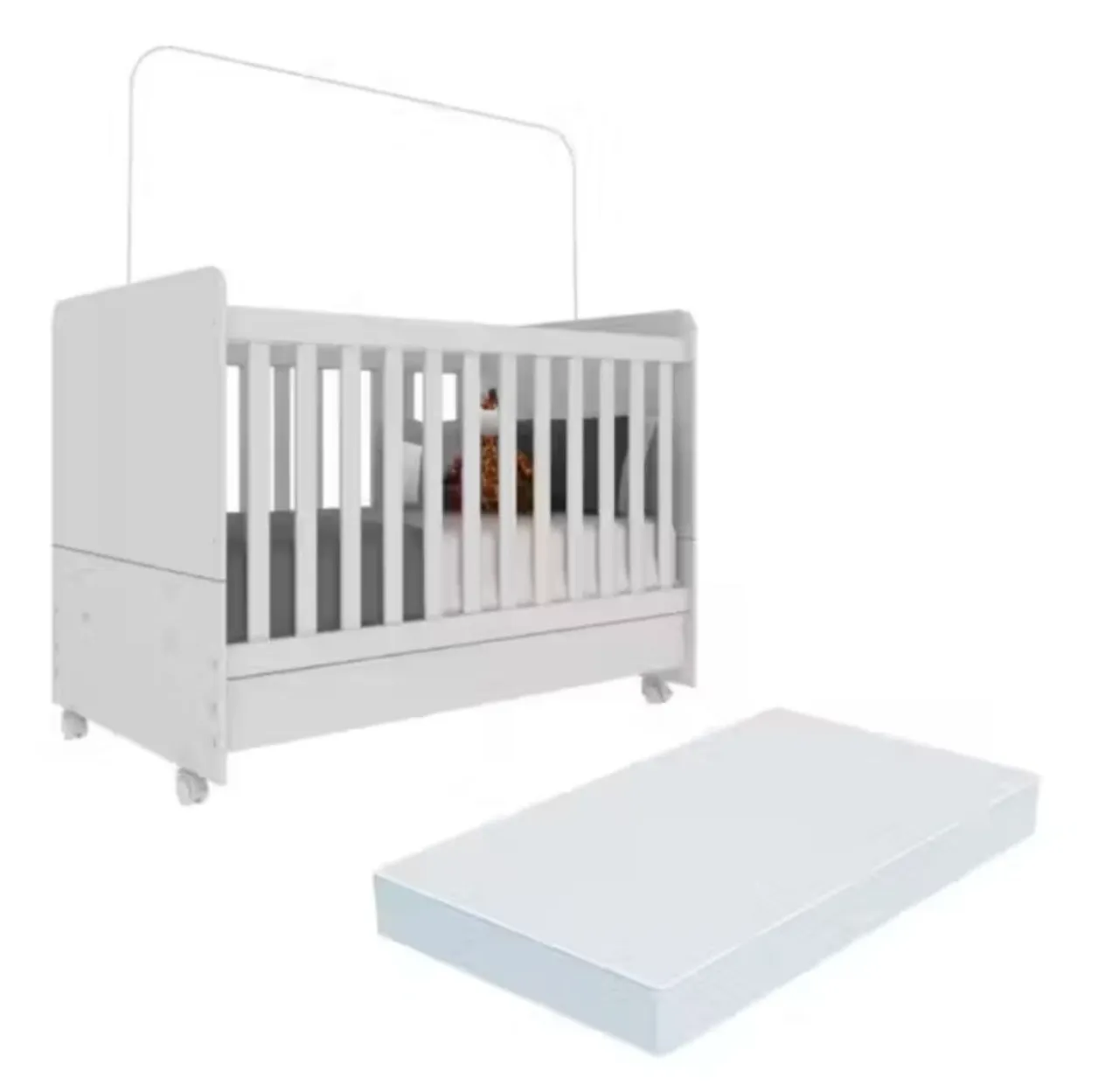 Lindo berço branco, perfeito para o quarto do seu bebê! Design moderno e seguro para o conforto e bem-estar do seu filho.