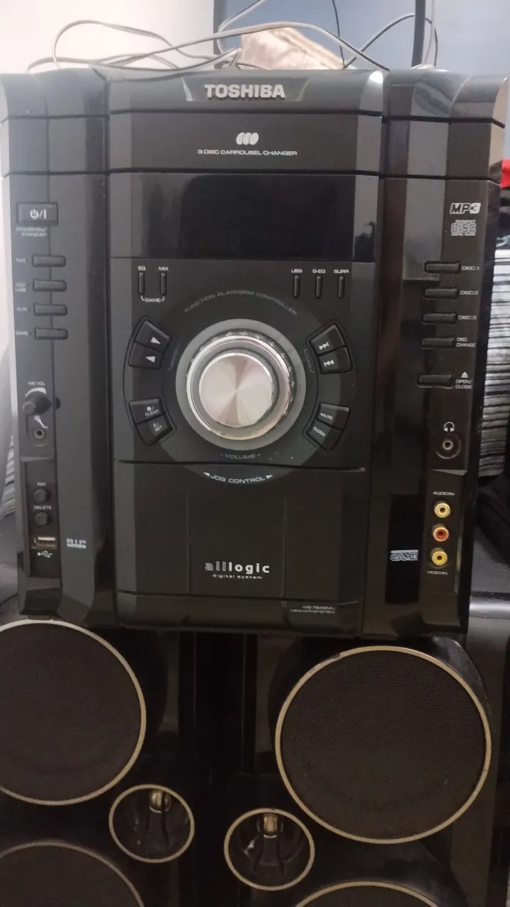 Som potente e com design moderno! Rádio Toshiba com diversas funções, incluindo leitor de MP3 e sistema de 3 discos. Perfeito para animar qualquer ambiente com alta qualidade sonora! A parte de CD não está funcionando.