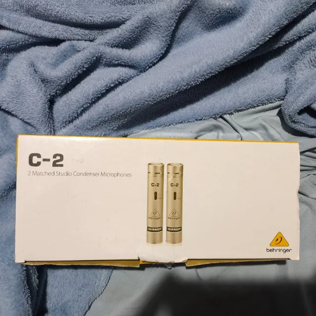 Microfones de estúdio condensador Behringer C-2, perfeitos para gravações de alta qualidade. Inclui 2 microfones com fio, ideais para captação de instrumentos, vocais e muito mais. Novos, na caixa.