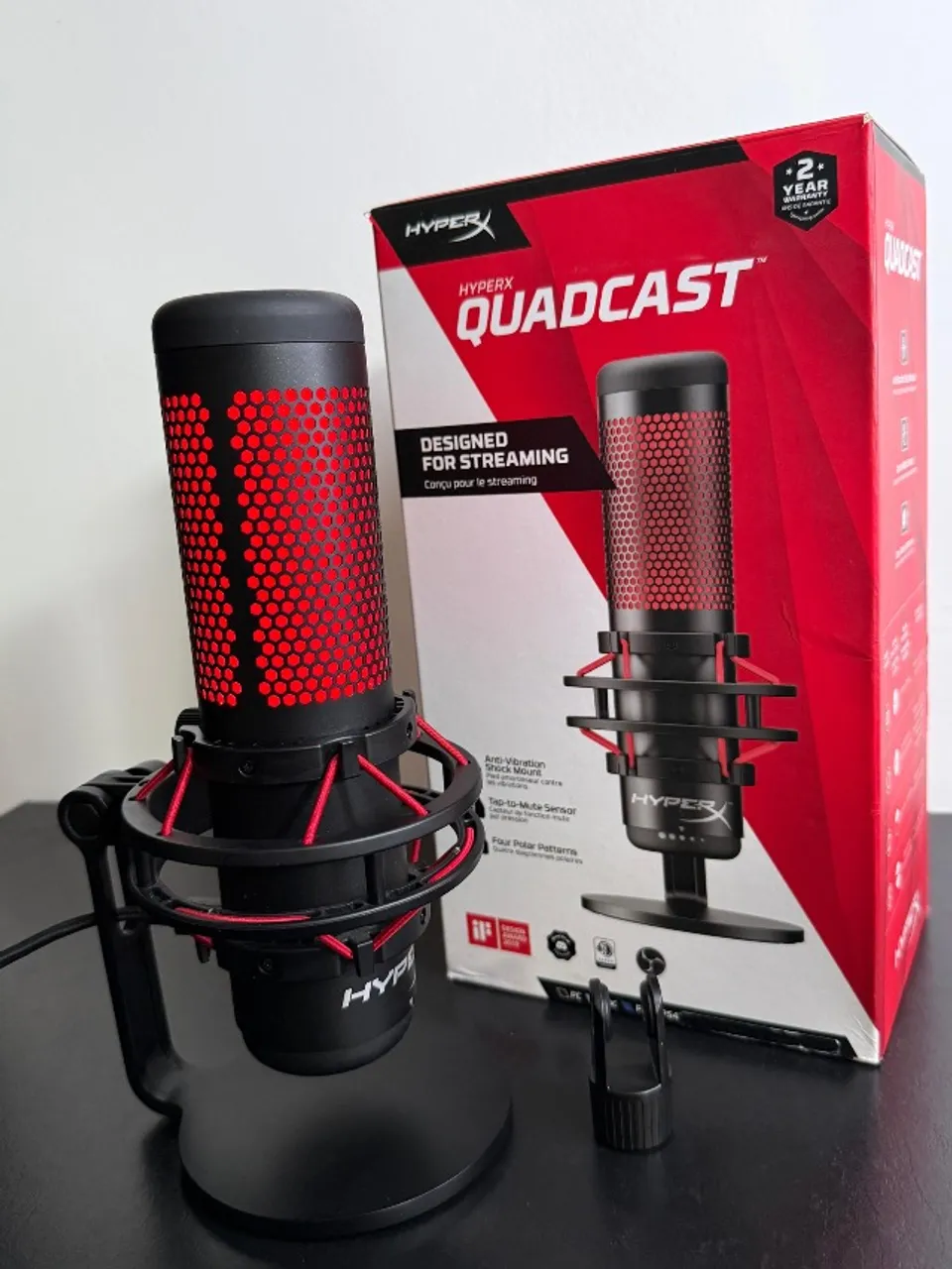 O microfone HyperX QuadCast entrega som limpo, potente e sem ruídos, ideal para lives, vídeos, podcasts, chamadas e jogos.