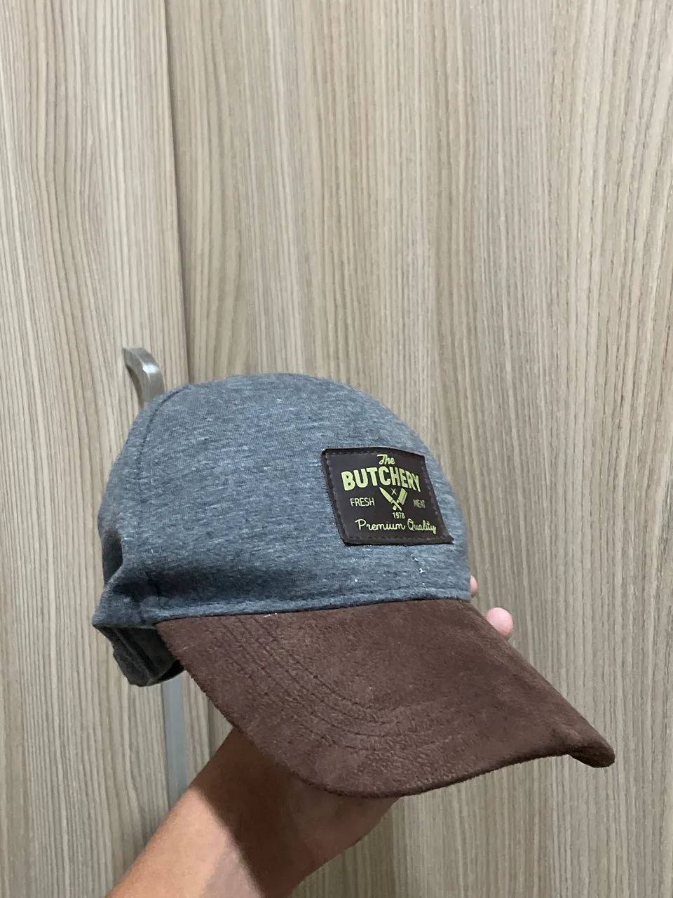 Boné estiloso com aba marrom e detalhe da marca The Butchery. Perfeito para completar seu visual com um toque de originalidade.