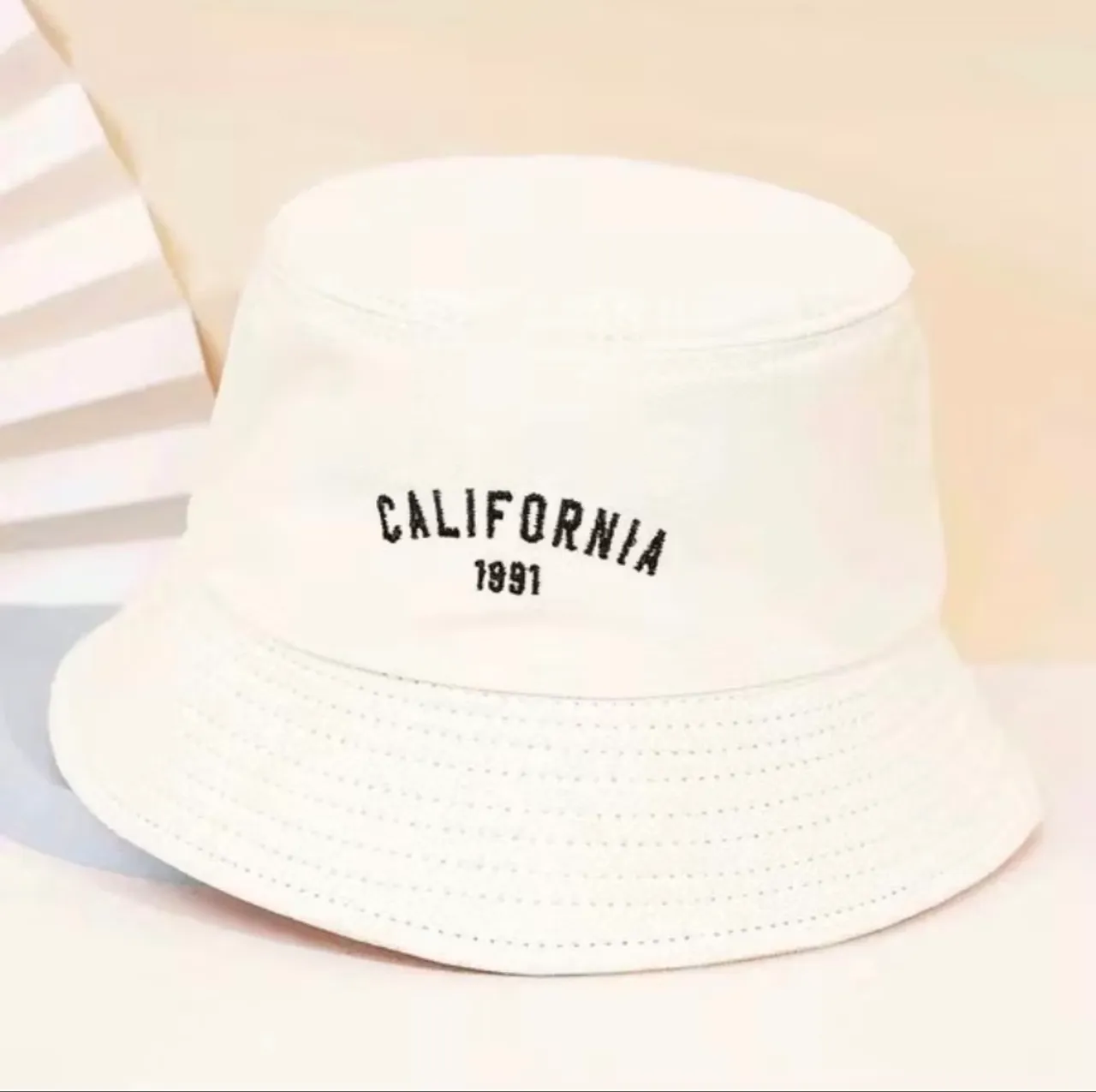 Chapéu bucket branco com a estampa "California 1991", um acessório moderno e estiloso para completar seu visual com um toque de atitude.