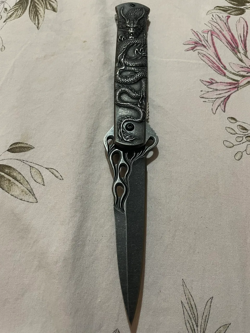 Canivete com design de dragão, perfeito para quem busca estilo e funcionalidade. Adicione um toque de personalidade ao seu dia a dia com este acessório único.