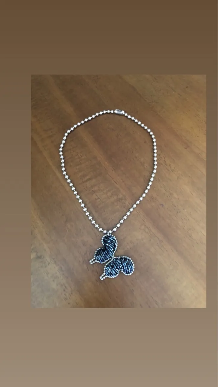 Lindo e estiloso colar prateado, de bolinhas com pingente borboleta em vidrilhos. Semi novo!