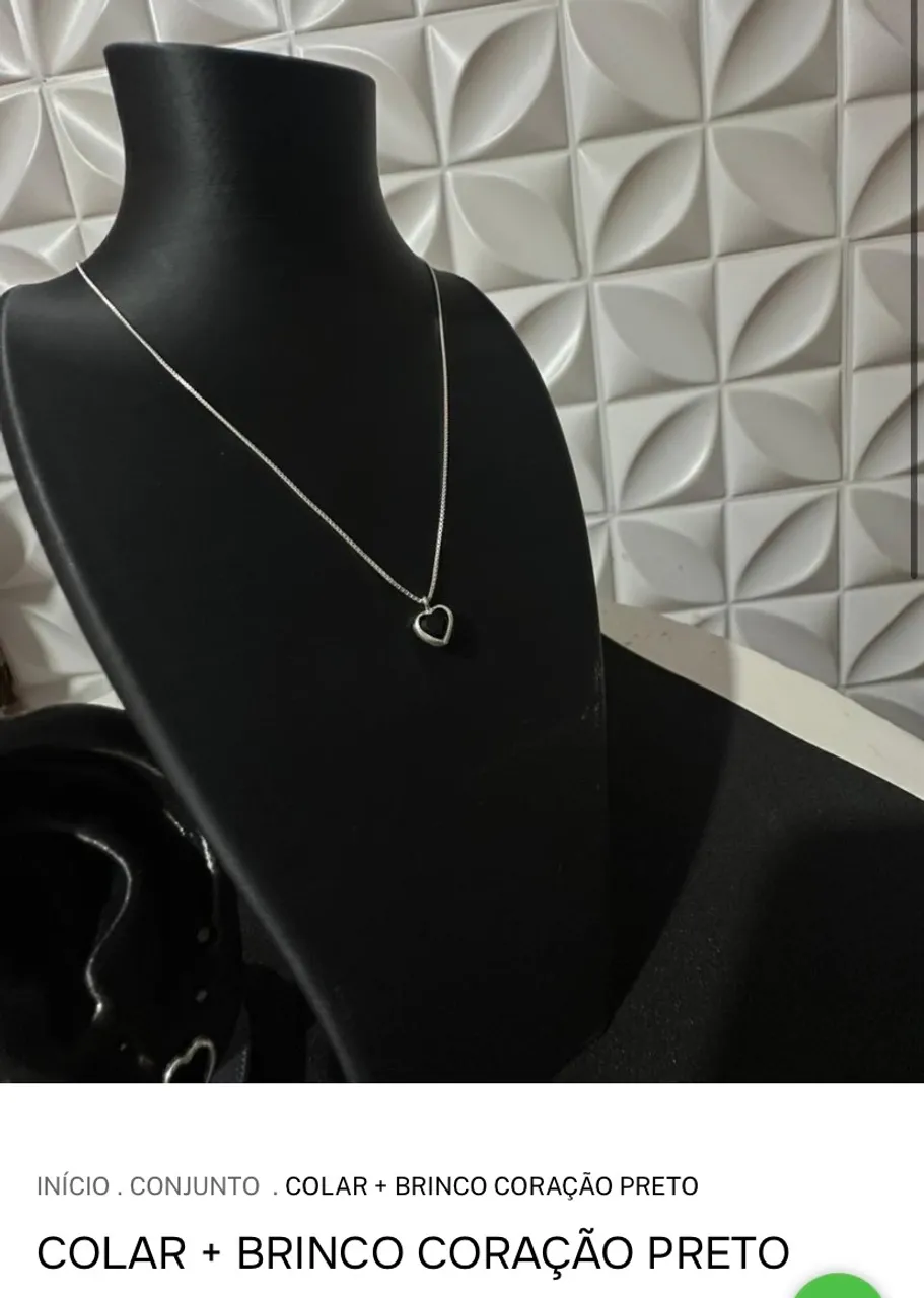 Lindo conjunto de colar e brinco de prata com design de coração preto, perfeito para adicionar um toque de elegância e sofisticação ao seu visual. Ideal para presentear alguém especial ou para se presentear!