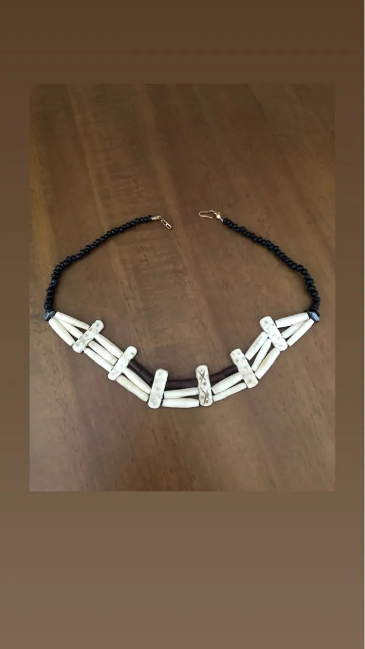 Gargantilha comprada no Peru que tras toda a arte de lá. É original e com certeza será notado e admirado por quem ve-lo. Está bem conservado!