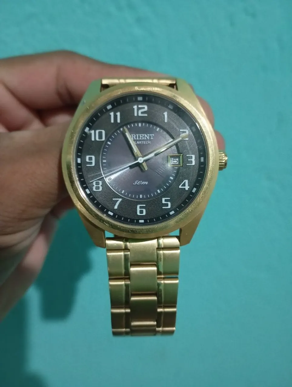 Relógio Orient Solartech dourado, um acessório que combina elegância e funcionalidade. Perfeito para complementar seu estilo com um toque de sofisticação.