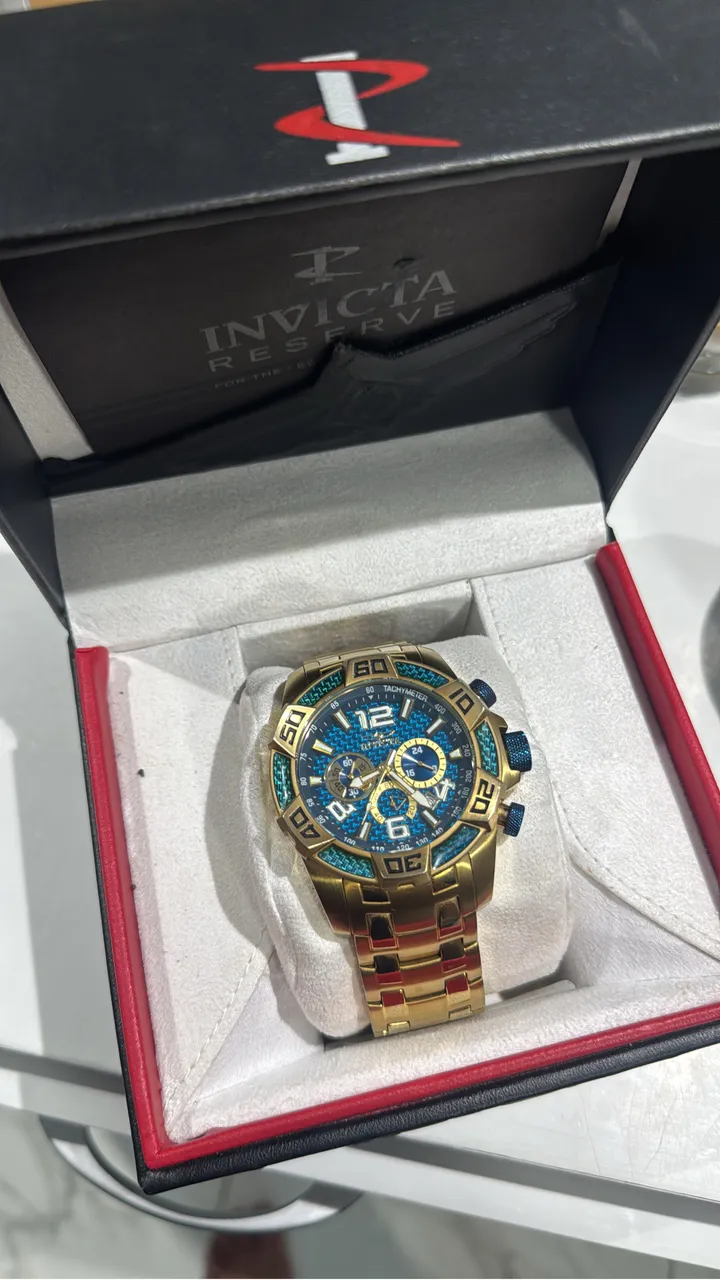 Relógio invicta masculino dourado azul 25852 Original