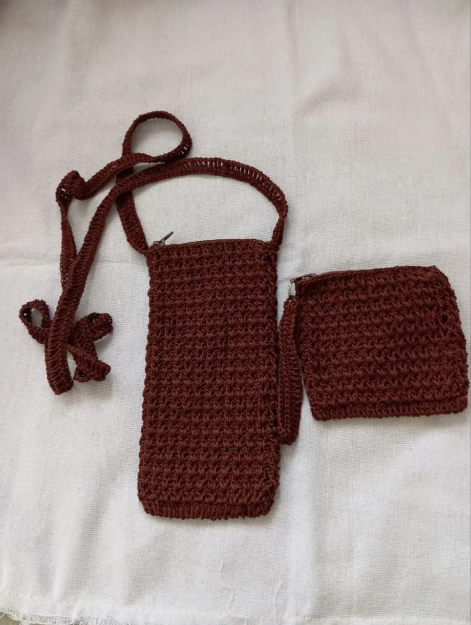 Lindp kit bolsa+ porta celular de crochê na cor marrom, perfeita para carregar seus pertences com estilo e praticidade. Feita à mão com carinho, essa peça única é ideal para quem busca um acessório charmoso e exclusivo.