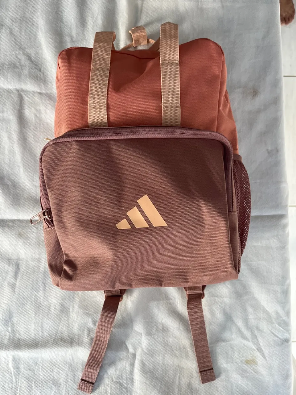 Dimensões: 12 cm x 24 cm x 32,5 cm. Volume: 15,75 L. Cor Argila/ Coral. 100% poliéster. Bolso frontal com zíper. Bolsos laterais abertos em malha elástica. Pode ser usada como mochila ou bolsa shopper. Alças de ombro acolchoadas e ajustáveis. Duas alças de mão. Nova. Temos disponível também, outras opções de cores, modelos, marcas e tamanhos. Aceito cartão. WhatsApp 819... ver número.