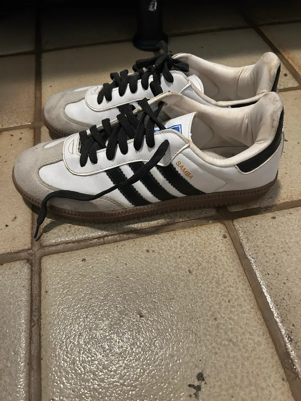 Descrição: Adidas Samba OG original, branco com listras pretas. Tênis em ótimo estado, com sinais leves de uso.