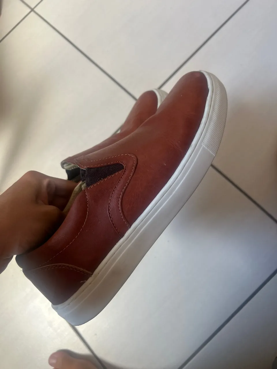 Tenis slip on na cor marrom, um clássico que nunca sai de moda. Conforto e estilo para o seu dia a dia!