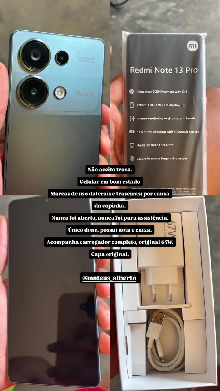 Redmi note 13 Pro. Perfeito estado . Todo original . Pra vender logoooo.
