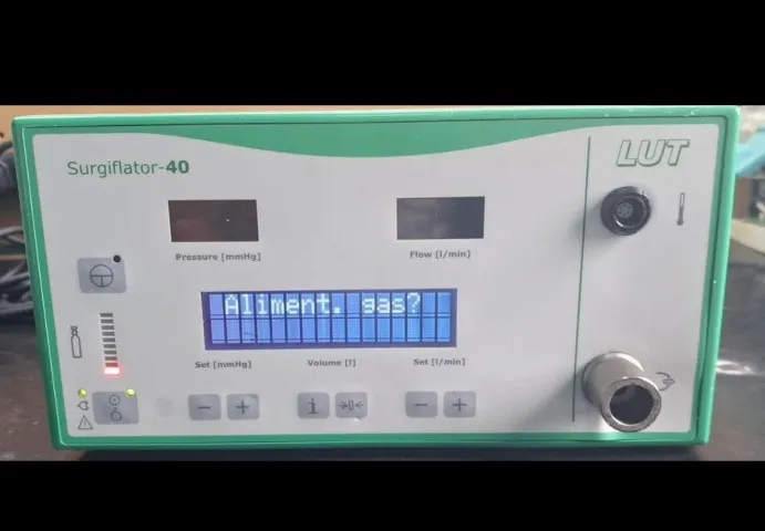 Surgiflator-40, equipamento essencial para procedimentos médicos. Apresenta tela para monitoramento de pressão e fluxo, e configurações precisas. Ideal para profissionais da saúde que buscam qualidade e precisão.