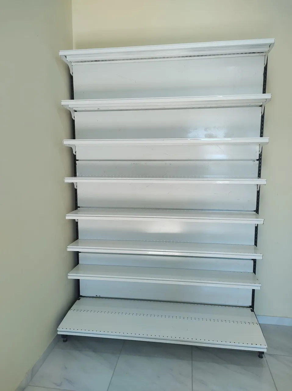 Gôndola de aço resistente e ideal para exposição de produtos em seu comércio. Otimize seu espaço e organize seus produtos com esta gôndola versátil.