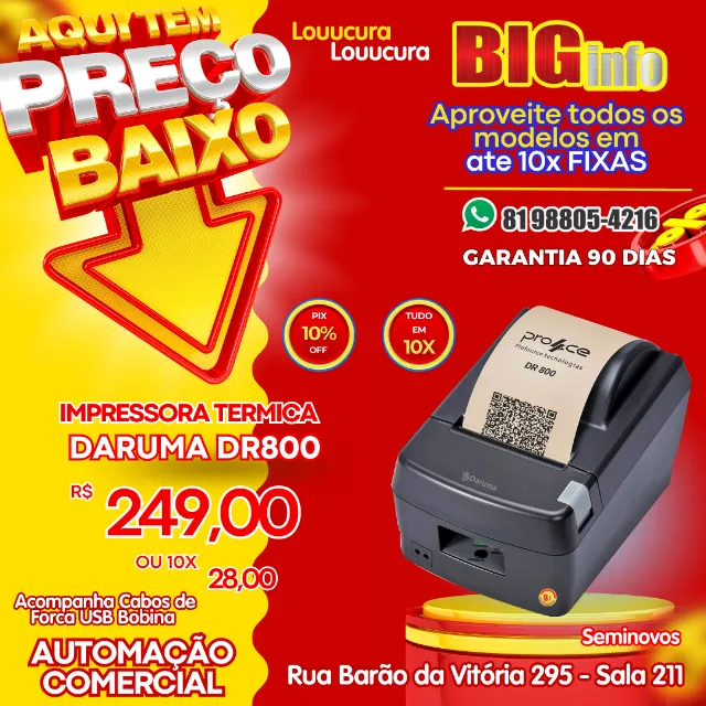 Impressora Térmica Daruma DR800, perfeita para automação comercial. Qualidade e eficiência para seu negócio.