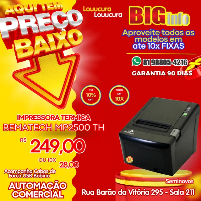 Impressora térmica para automação comercial. Acompanha cabos USB. Aproveite!