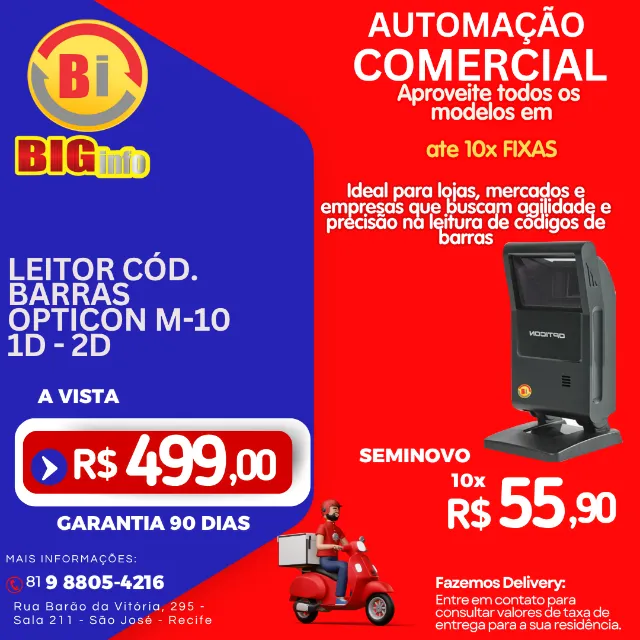 Leitor de código de barras Opticon M-10 1D-2D. Ideal para lojas, mercados e empresas que buscam agilidade e precisão na leitura de códigos de barras. Aproveite!