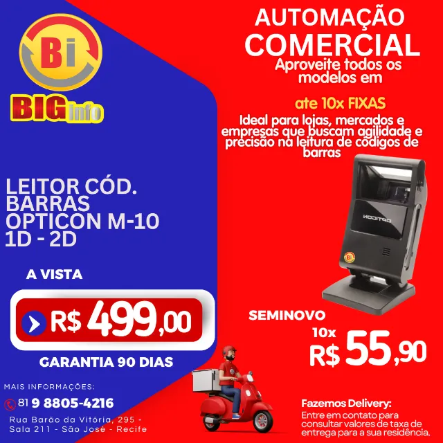 Leitor de código de barras Opticon M-10. Ideal para lojas, mercados e empresas que buscam agilidade e precisão na leitura de códigos de barras. Aproveite!
