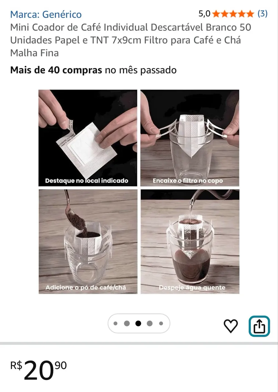 Mini Coador de Café Individual Descartável Branco 50 Unidades Papel e TNT 7x9cm Filtro para Café e Chá Malha Fina