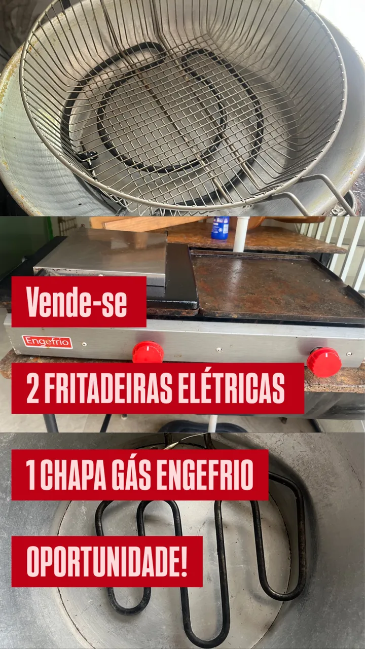 Estou vendendo 2 fritadeiras elétricas em perfeito estado e uma chapa, a chapa é estado de zero, comprei para o meu comércio e não teve utilidade, ficando mais tempo parada
