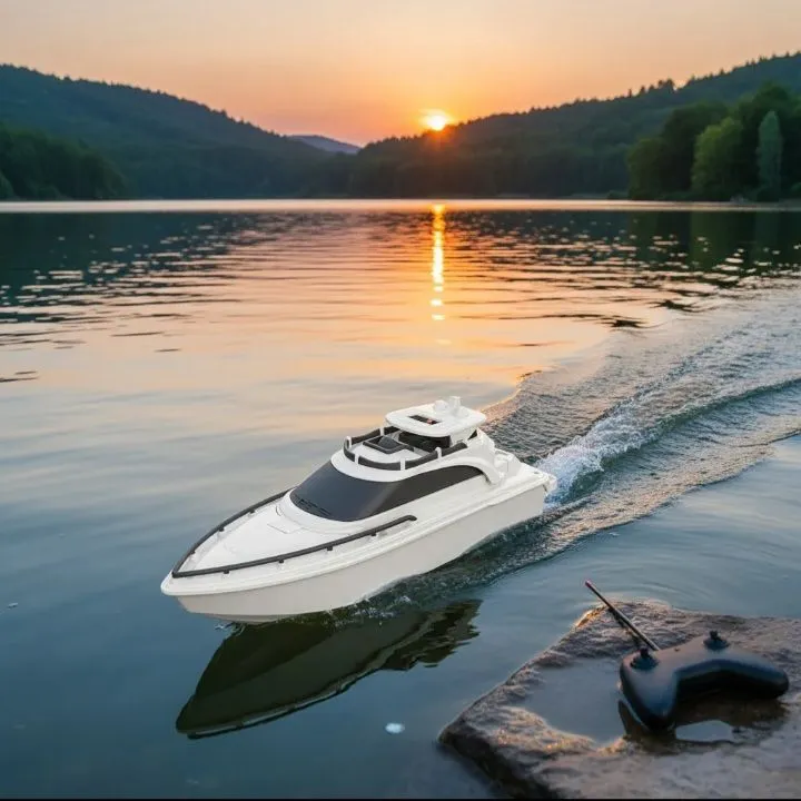 Navegue com estilo com esta lancha de controle remoto! Design elegante, fácil de manusear e perfeita para diversão em lagos e piscinas. Experimente a emoção de controlar seu próprio barco, bateria recarregavel!
