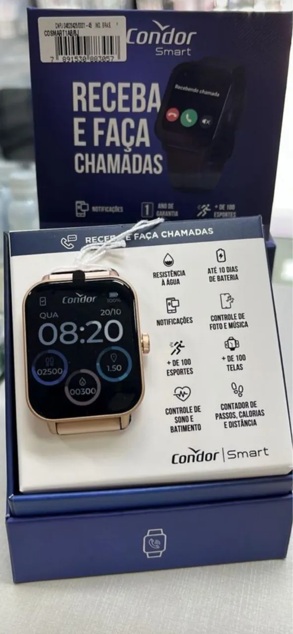 Smartwatch Condor, design elegante e funcionalidades incríveis! Receba e faça chamadas, monitore sua saúde e atividades físicas com precisão. Bateria de longa duração e resistência à água.