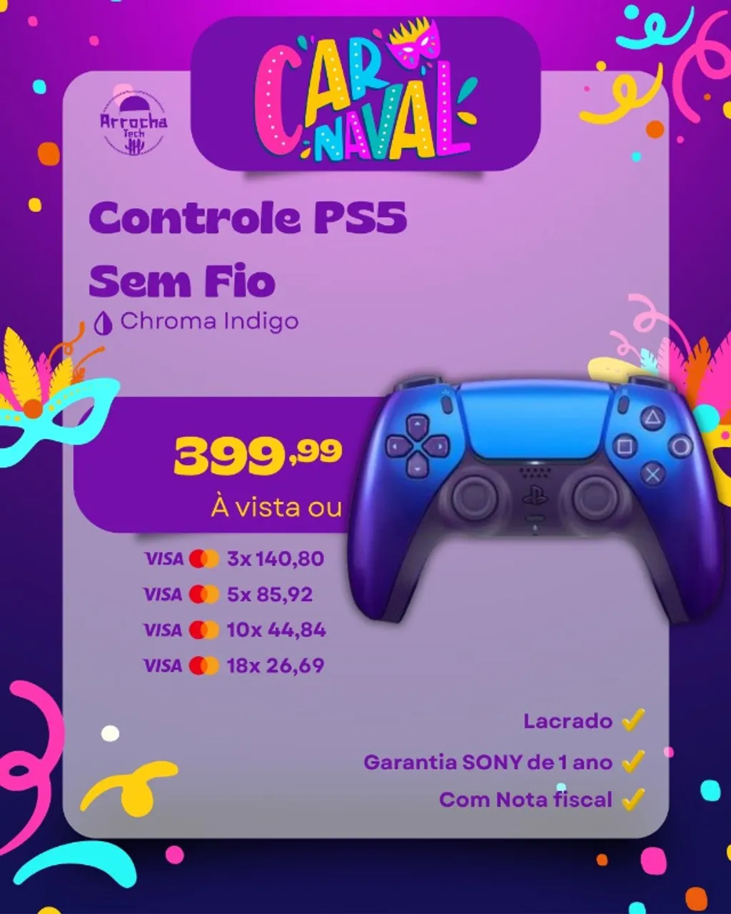 Experimente a imersão total com o Controle PS5 Chroma Indigo! Design elegante e cores vibrantes que elevam sua experiência de jogo. Desfrute de cada detalhe com a garantia de um produto lacrado, com garantia Sony de 1 ano e nota fiscal.