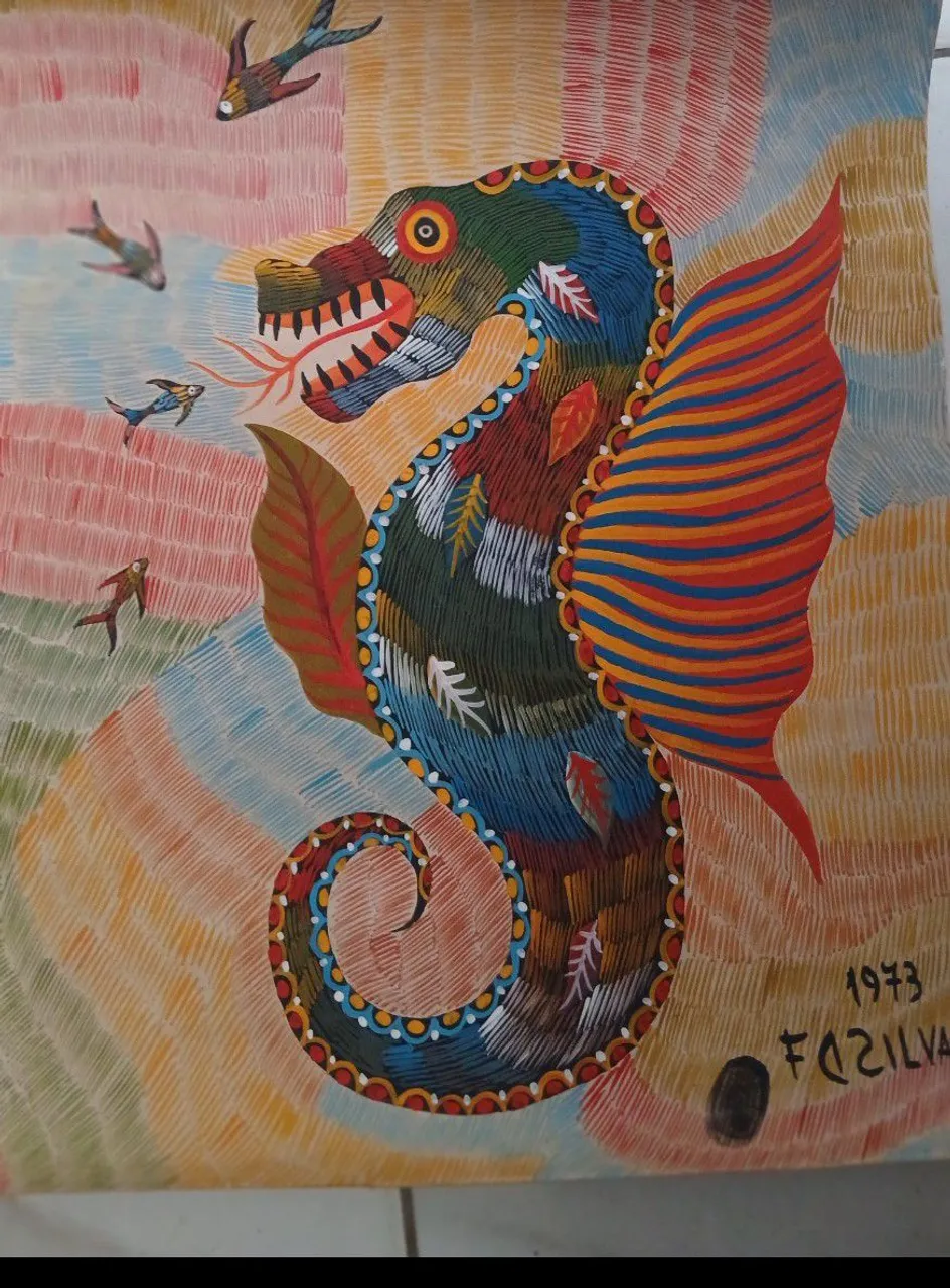 Maravilhosa obra de arte de Chico da Silva, uma têmpera sobre papel que encanta com suas cores vibrantes e detalhes únicos. Uma peça de colecionador que evoca a magia e o talento do artista. Mede 50 X 40