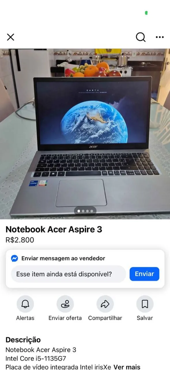 Notebook Acer Aspire 3 com processador Intel Core i5-1135G7. Ideal para trabalho e estudos, com tela de alta resolução e design elegante.