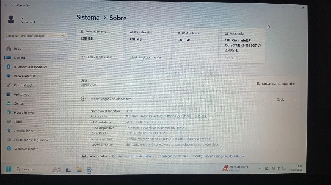Desfrute de alto desempenho com o Notebook Dell Vostro! Equipado com processador Intel Core i5 de 11ª geração, este notebook oferece velocidade e eficiência para suas tarefas diárias. Ideal para trabalho e estudo, com design moderno e tela de alta resolução.