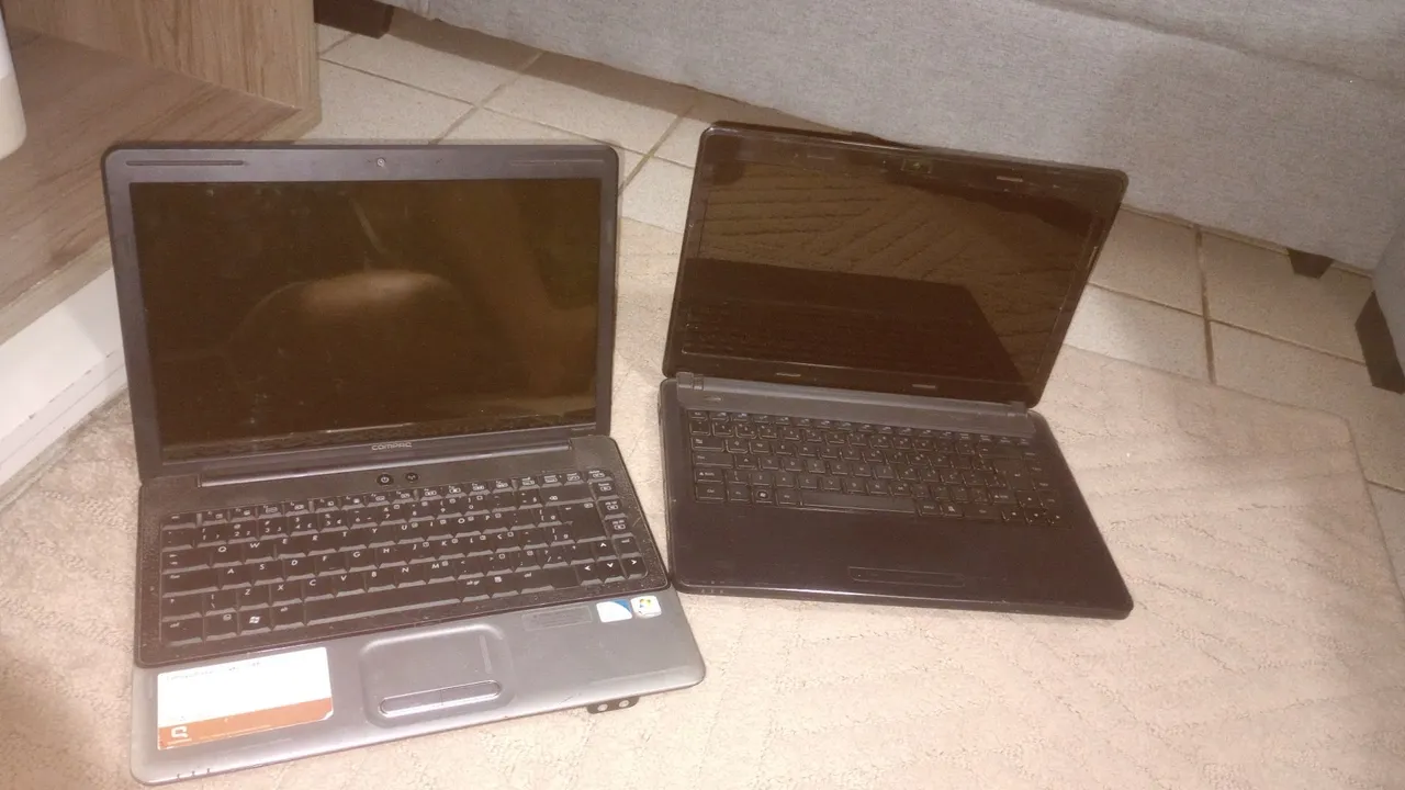 Notebooks com defeito nas placas mãe , o positivo a bateria está boa porém sem fonte e outro Compaq está com a fonte porém sem bateria.