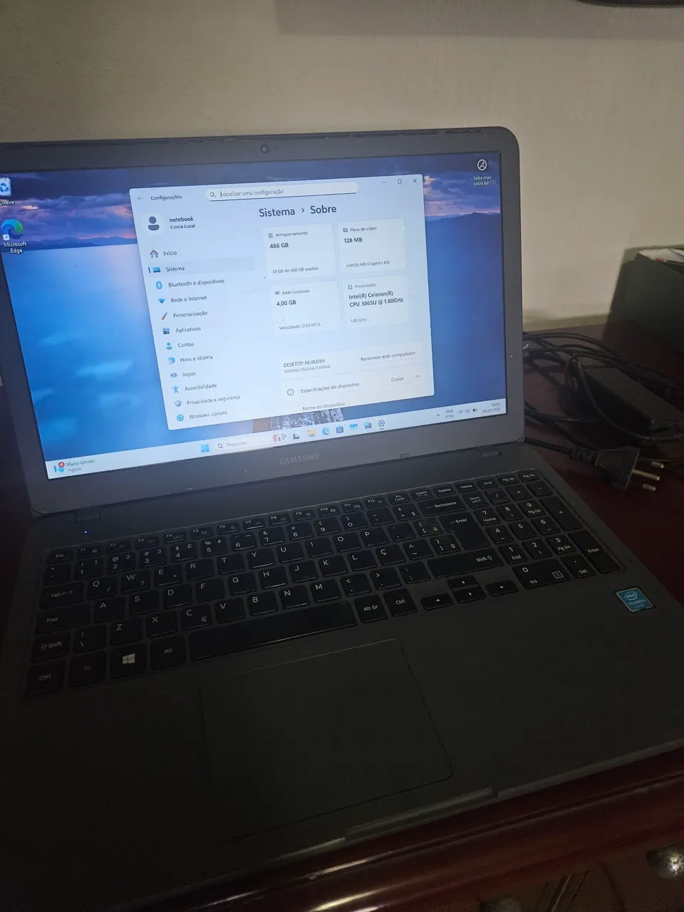 Notebook Samsung com processador Intel Celeron de 1.8GHz, 4GB de RAM e HD de 500GB, Windows ativado. Perfeito para suas tarefas diárias com desempenho e praticidade!