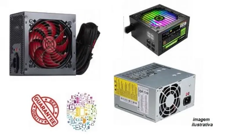 Variedade de fontes para PC, com diferentes modelos e potências. Ideal para upgrades ou montagem de novos computadores. Confira!