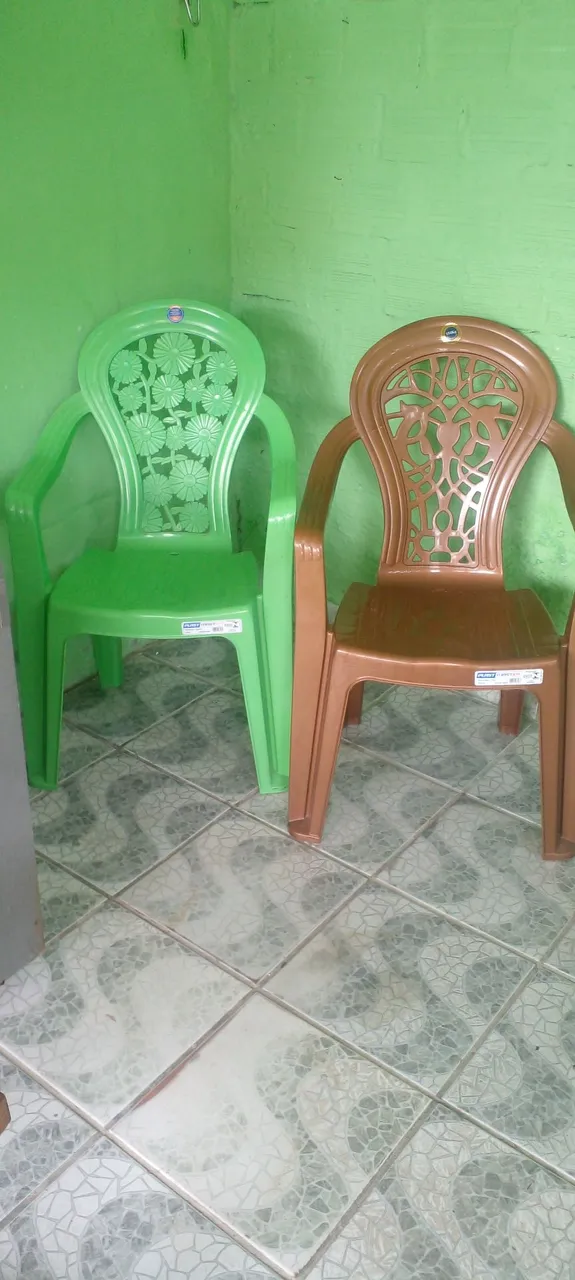 Vendo 2 cadeiras de plástico com braço,tipo poltrona,novas,mais informações pelo zap.