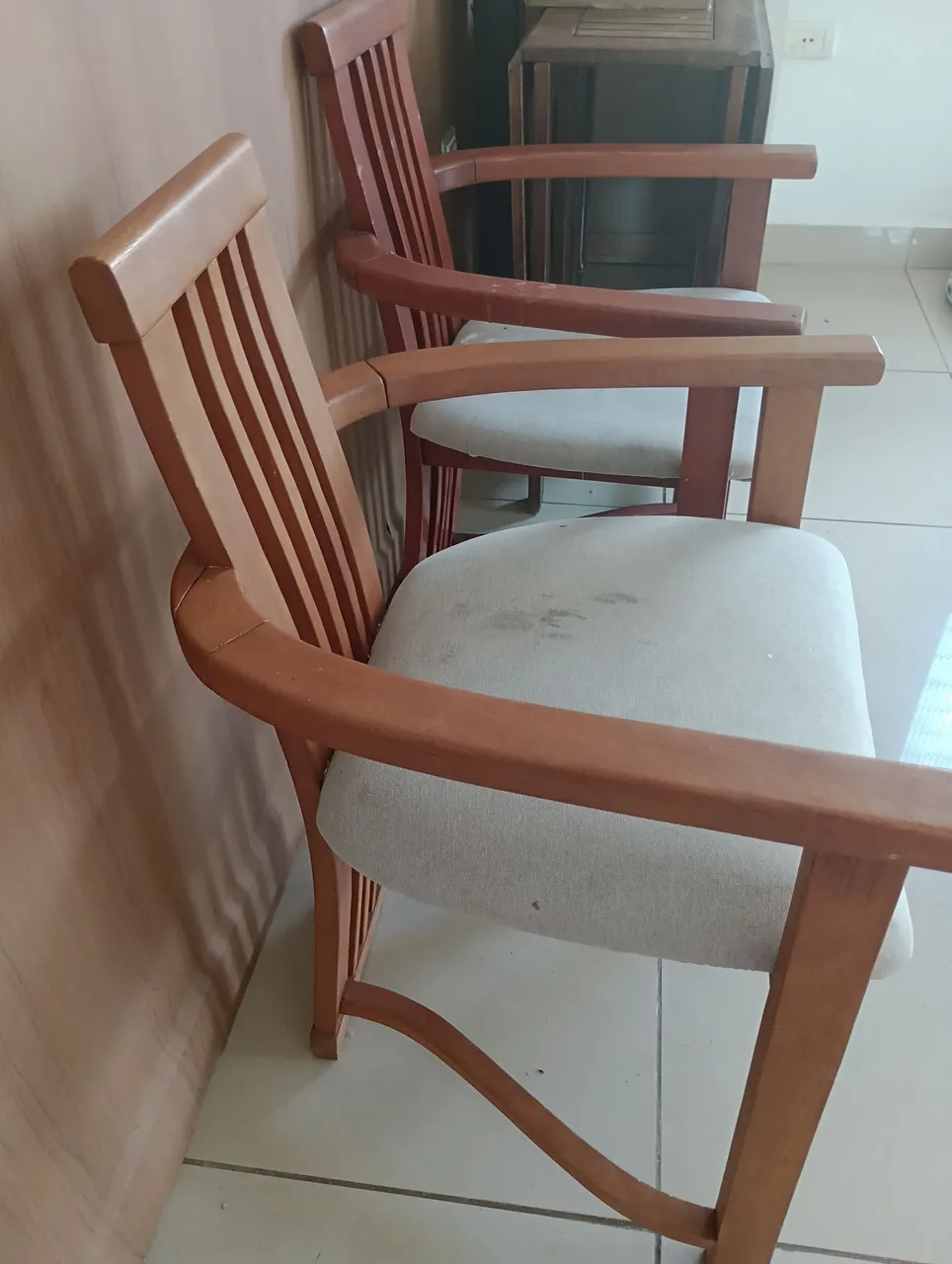 Cadeiras de madeira com design clássico e assento confortável, perfeitas para sala de jantar ou escritório. Adicione um toque de elegância ao seu ambiente!
