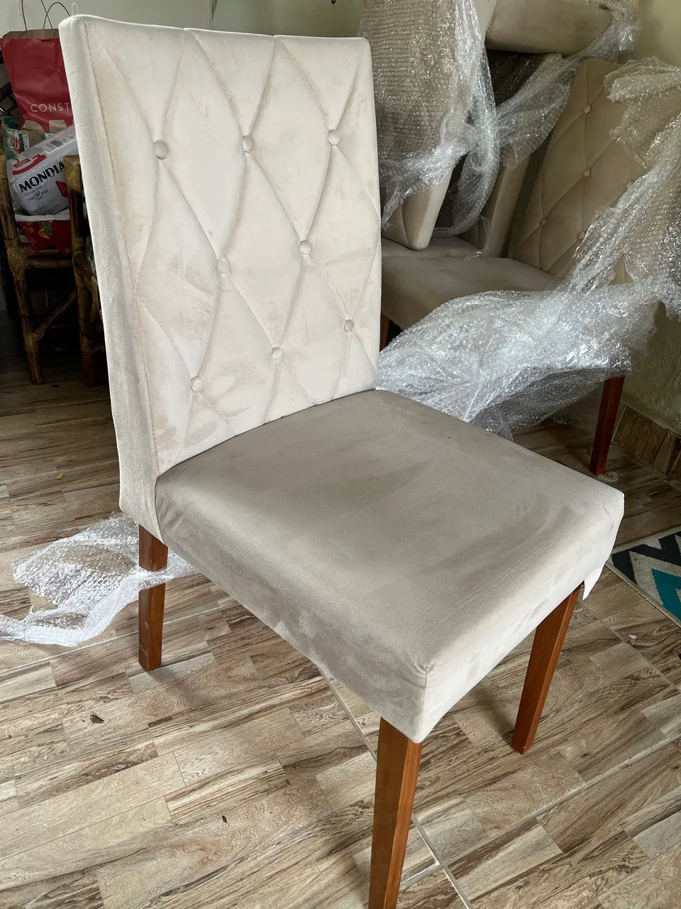 Ao total tenho 8 cadeiras. Mas posso vendê-la individual caso seja de sua preferência. 120 reais cada