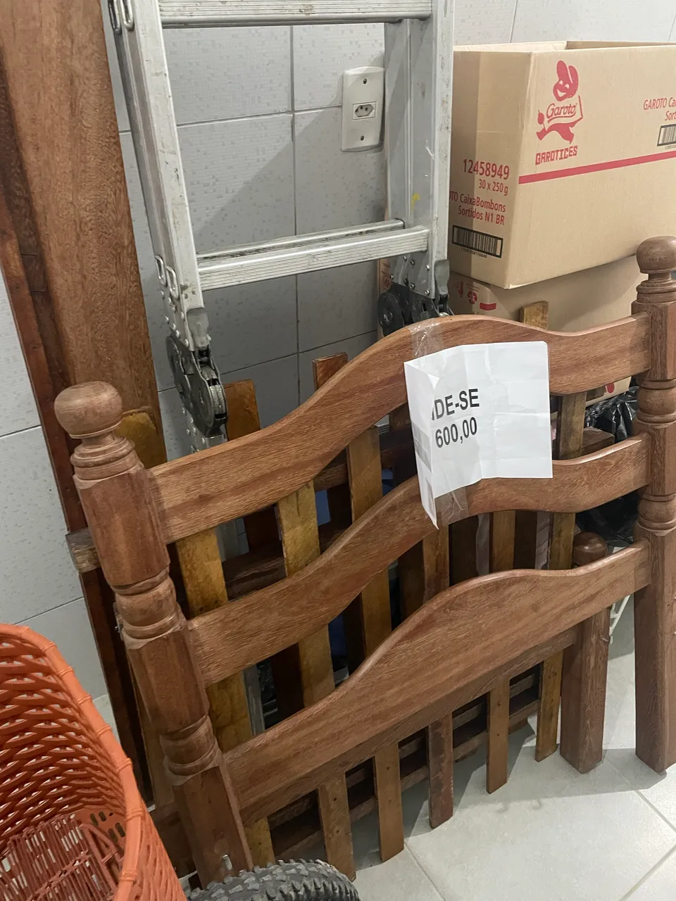 Linda cama de madeira maciça, com design clássico e detalhes que valorizam o ambiente. Proporciona conforto e elegância ao seu quarto.
