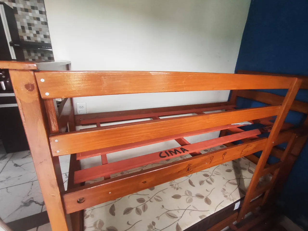 Triliche de madeira, ideal para otimizar espaço em quartos. Perfeita para acomodar até três pessoas com conforto e segurança.