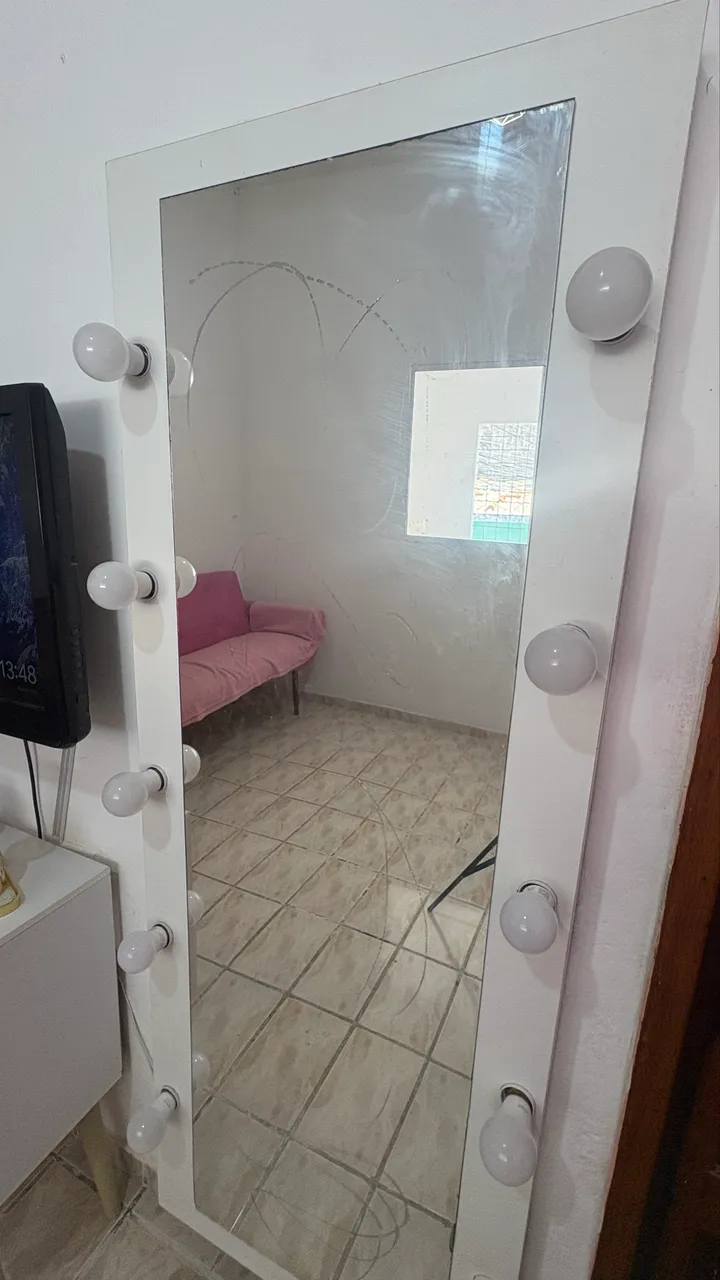 Espelho camarim perfeito para maquiagem, com iluminação embutida que proporciona uma experiência única. Design elegante e funcional, ideal para deixar seu espaço ainda mais charmoso.