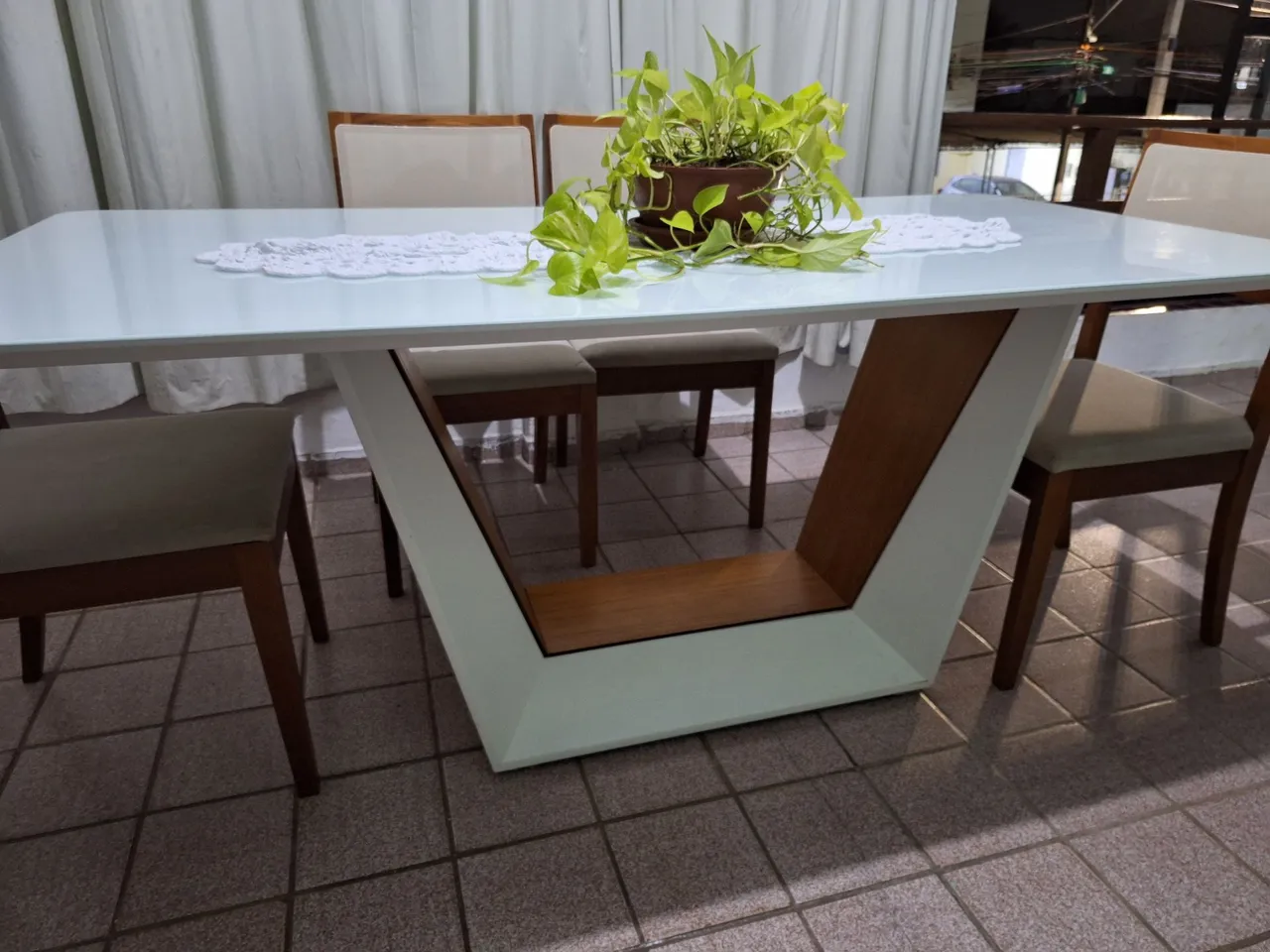 Linda mesa em madeira de 180x0,90, com tampo de vidro temperado, sem nenhuma avaria. APENAS A MESA!!!