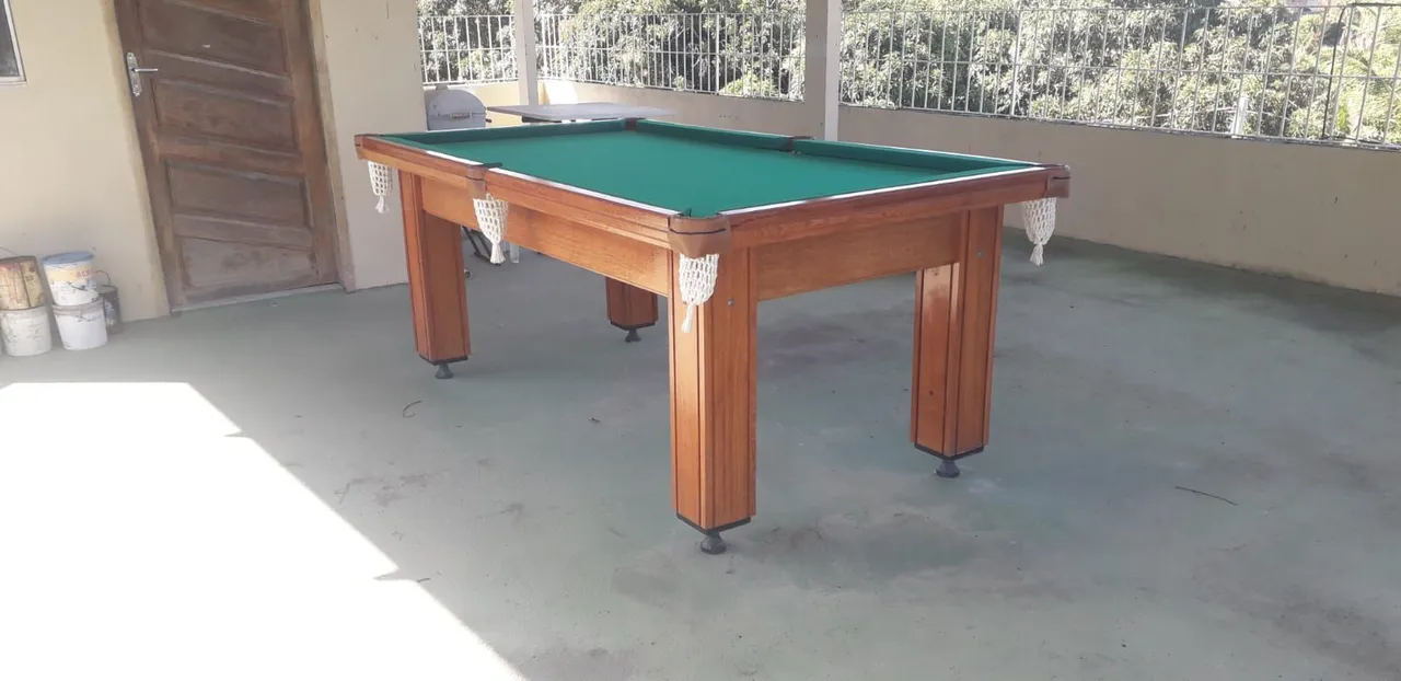 Linda mesa de bilhar em madeira, perfeita para momentos de lazer e diversão com amigos e familiares. Design clássico e elegante que combina com qualquer ambiente. Uma ótima opção para quem busca qualidade e entretenimento!