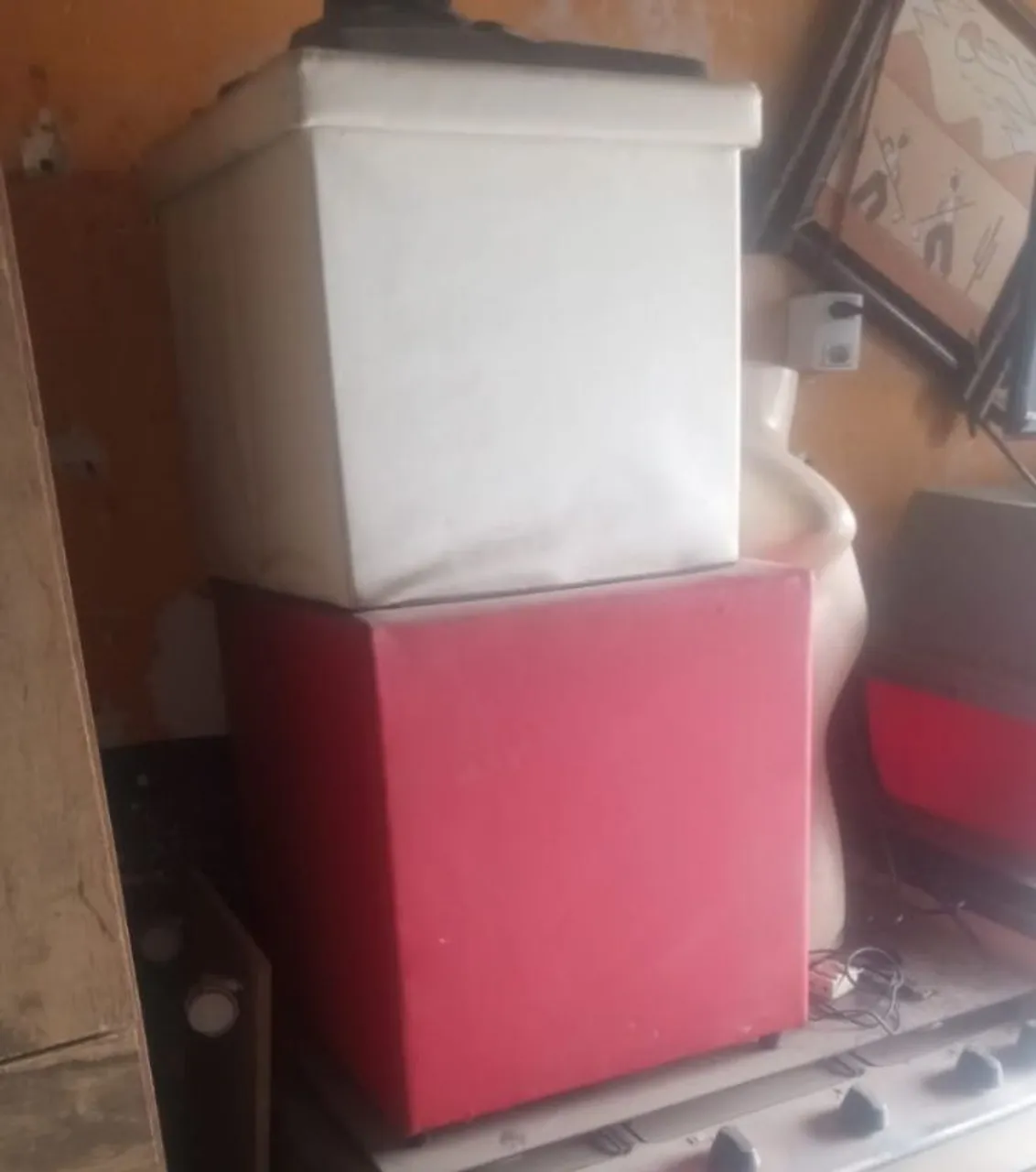 Conjunto de 2 puffs modernos e elegantes, perfeitos para complementar sua sala de estar. Design compacto e versátil, ideais para relaxar ou receber visitas.