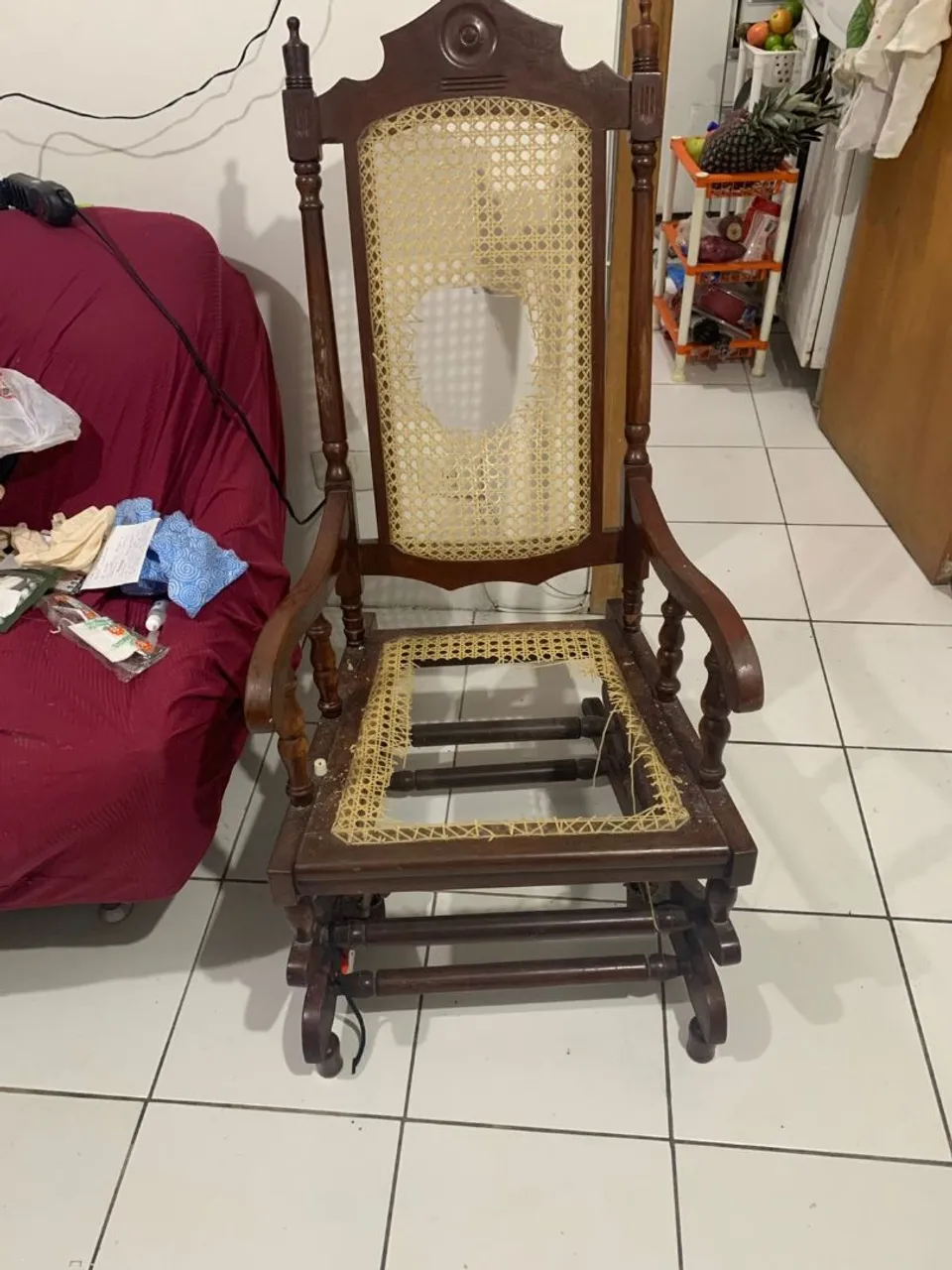 Linda poltrona de balanço em madeira, ideal para relaxar e decorar sua casa.