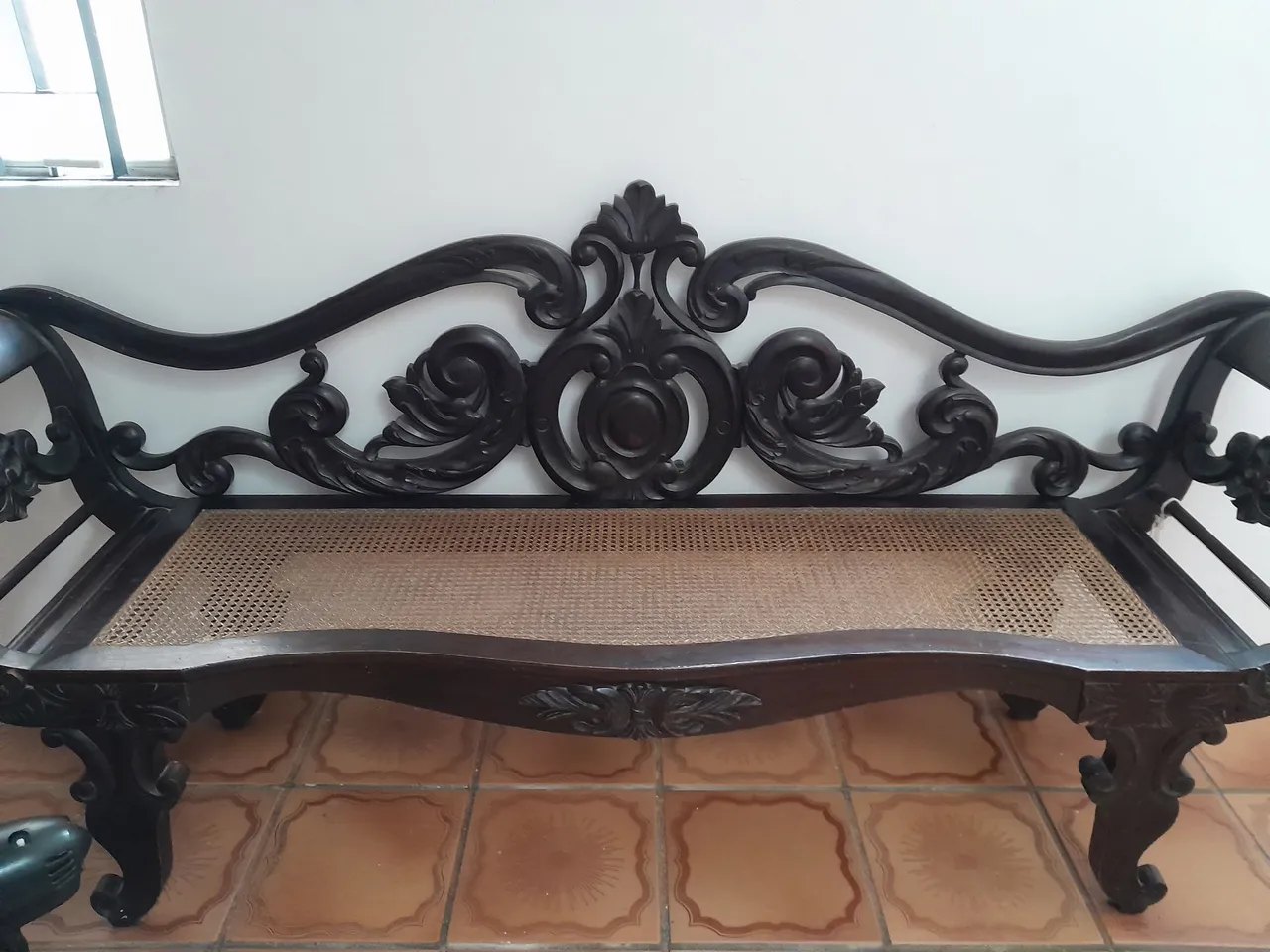 Lindo marquesão de madeira entalhada, com design clássico e elegante, com assento em palhinha original.Perfeita para decorar sua casa com requinte e sofisticação.