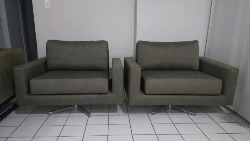 2 Poltronas com medida 1.00 x 92 bom estado de conservação. Base alumínio giratória. Vendo apenas o par.