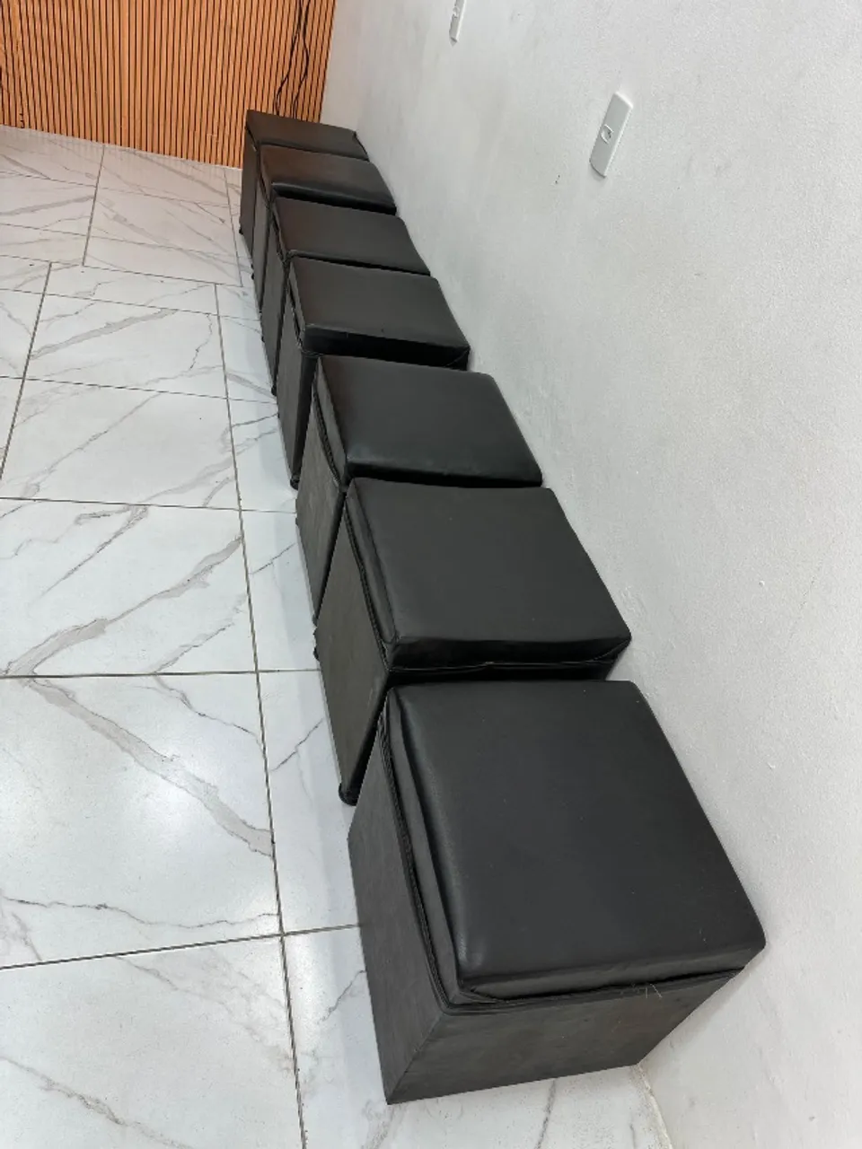 Puffs quadrados em couro sintético, ideais para complementar a decoração da sua casa ou escritório. Conforto e estilo em um só produto!
